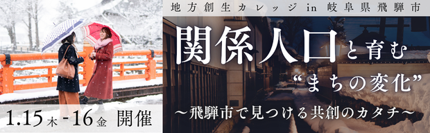 - 令和7年度地方創生カレッジ in 岐阜県飛騨市「関係人口と育む"まちの変化"~飛騨市で見つける共創のカタチ~」